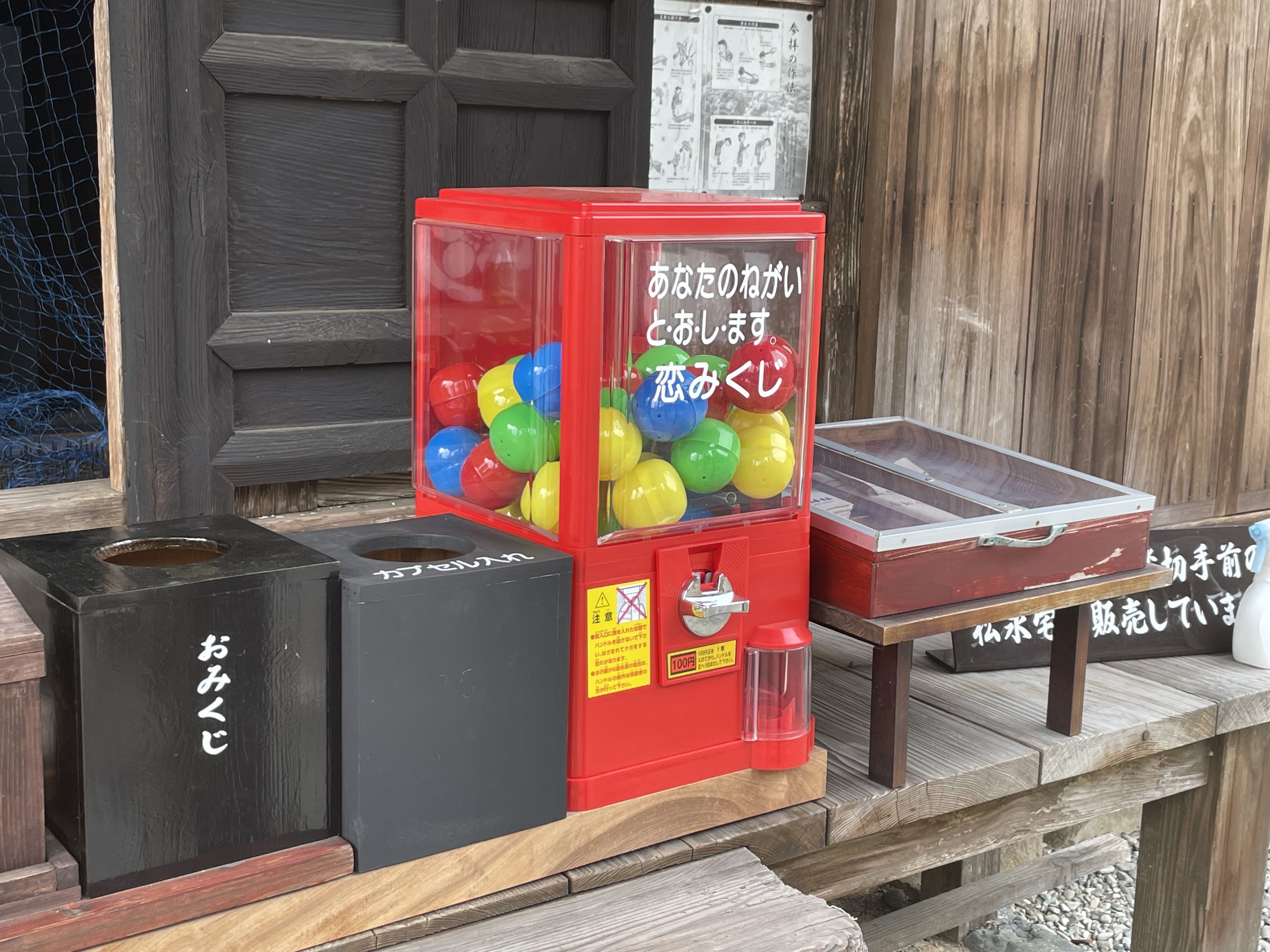 恋みくじガチャガチャ、です。思いっきり不釣り合いな色合いです。しかもここ縁結びの神様じゃないし…。