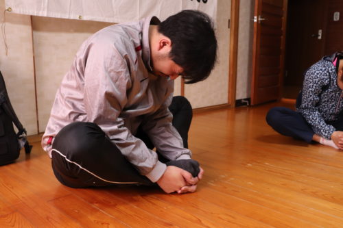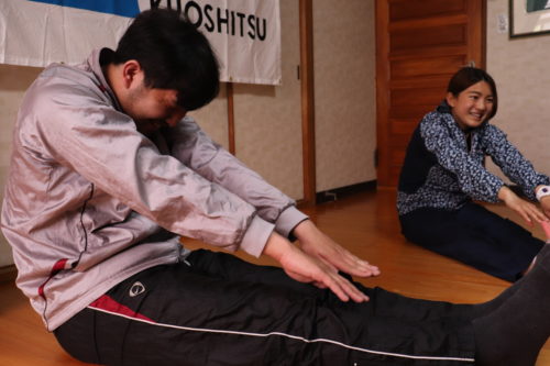 次は足の裏をあわせ、股関節伸ばしていきます。