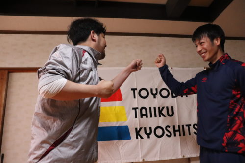 大の大人が大はしゃぎ。想像以上に手押し相撲、楽しいようです。