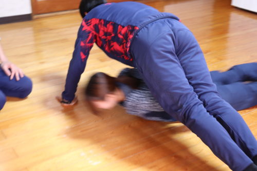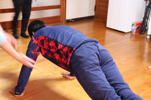 最初にトンネル役の人が、腕立て伏せのポーズを行います。