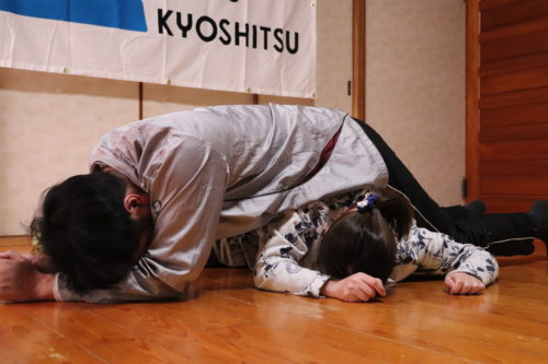 シュッと立ち上がり、そのタイミングでトンネル役の人は床をおなかにつけ