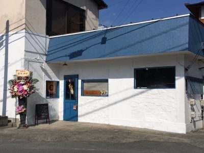 お店の場所は黒髪で、国道3号線を必由館高校入口交差点から濟々黌方面へと入った道路沿いにあります。白い壁と青い屋根が目印の建物です。