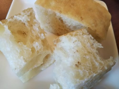 パンの中にはゴマが入っていて、小麦やオリーブオイルの風味豊か。パスタソースともよく合う味わいです。