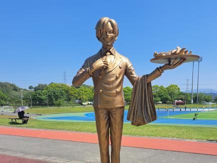 ここは某人気漫画のキャラクター像があります。