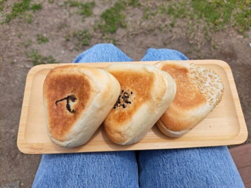 早速パンを食べるべく、購入して場所を移動。