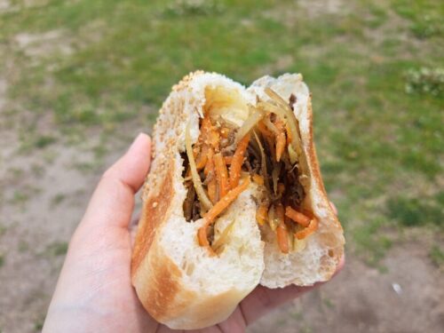 そして、なんといってもパンがしっかりした生地で弾力があり、甘辛旨いきんぴらごぼうの味を邪魔せず香ばしさも加わっています!