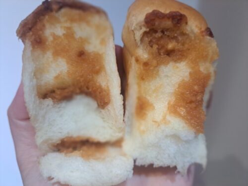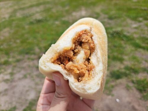 これパンの弾力がある分お米のおにぎり以上に食べごたえもありますね。