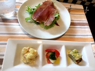 初めから女性の心を鷲掴みする生ハムが魅力的なサラダにカプレーゼなど。