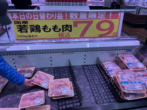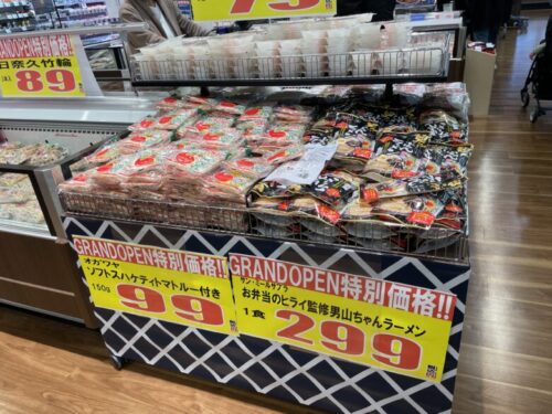 店内に入るとオープンのチラシがデカデカと掲示されているので、どの商品が安いのか狙いを定めやすいです。