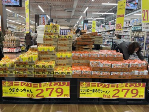 商品が多すぎて、何が安くなっているのかわからないといった方は、上の画像のようなポップの商品を狙いを定めてください。