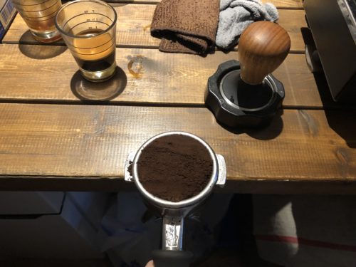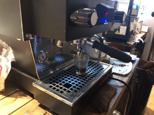 「やり方をお見せしますね」とコーヒーの粉を計って、詰めて、平らにしてセットして抽出。サササっと手際よくエスプレッソのマシンを操作していく藤田さん。