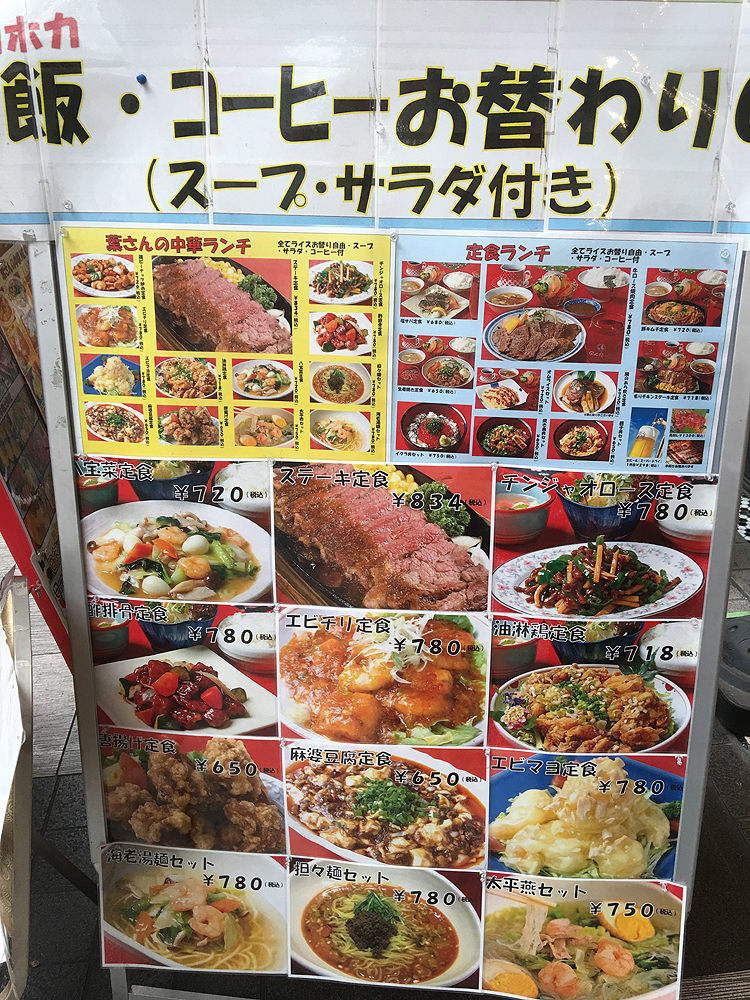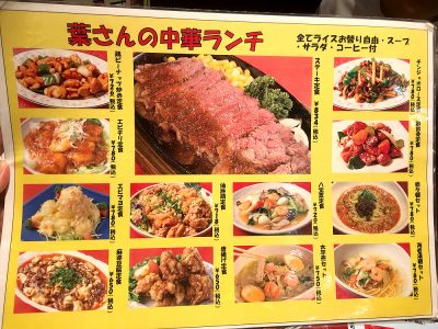 外に並べられた看板を見ると、ランチメニューがとても豊富なことがわかります。