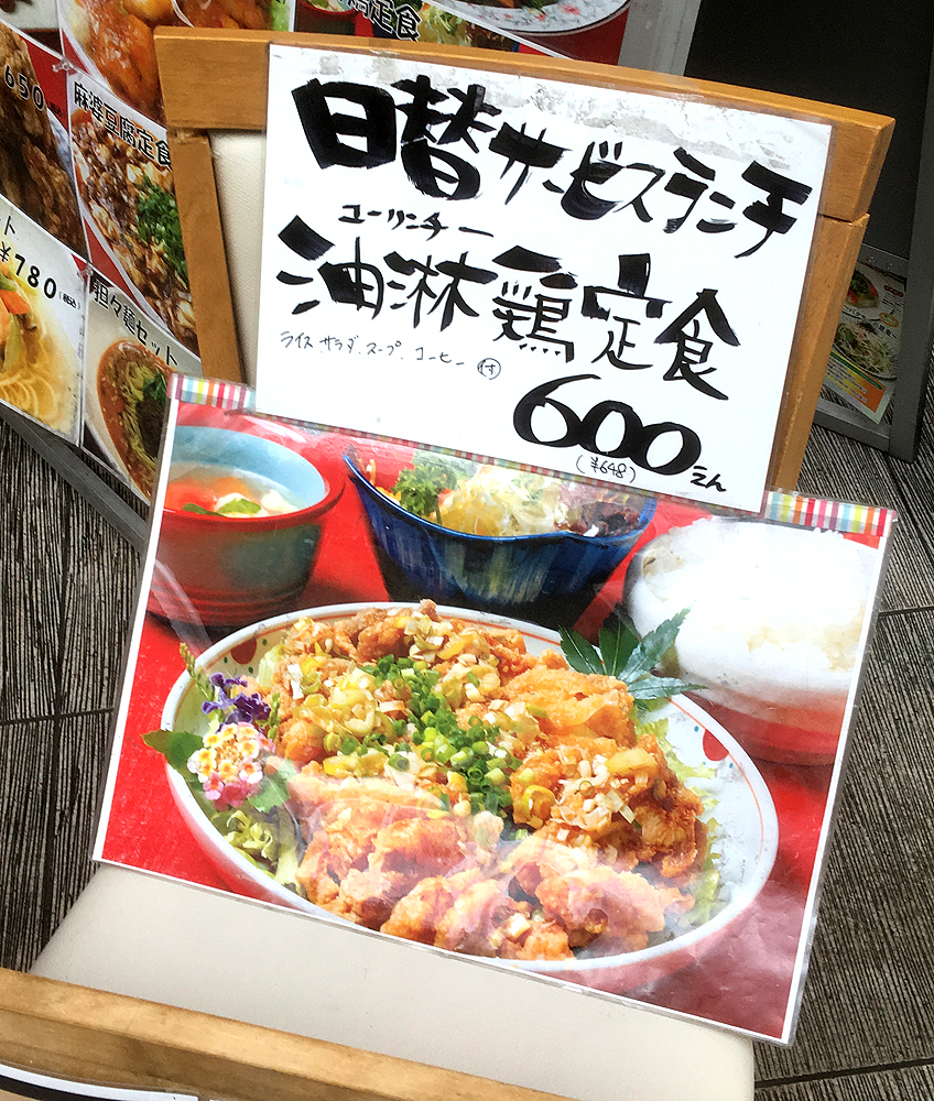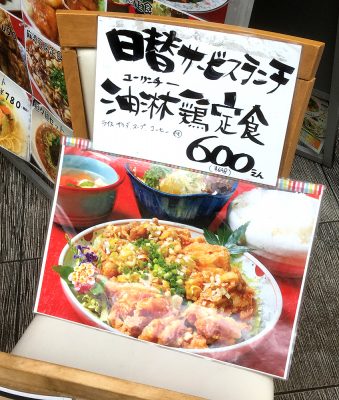 この日の日替わりランチは油淋鶏定食で、600円でこのボリュームです!