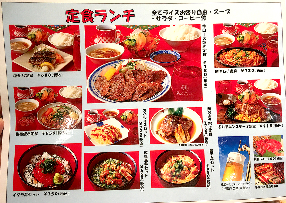 さらに中華ランチとは別に、通常の定食ランチもこの品揃えです!牛ロース焼肉定食が750円となんともリーズナブル!