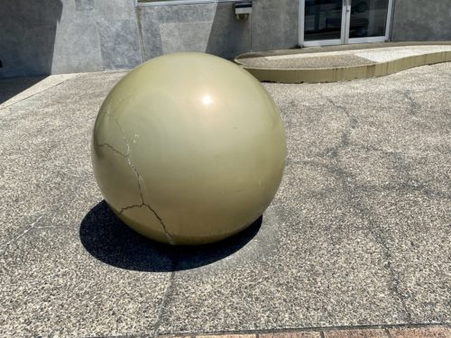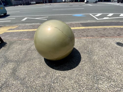 …あの金の球体ですか。「くまもとアートポリス」の一環で設置されたものだとは思うんですが…。結局あの球体が何で、何を表現しているのか、いつから設置されているのかまでははっきりと分かりません…。すみません…。