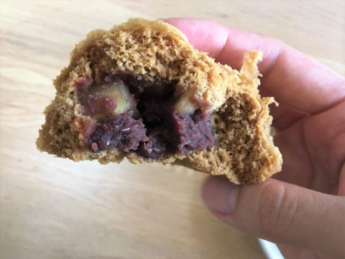 新商品という、芋入りの黒糖饅頭も、黒糖が香る懐かしい味わいのふかふかの皮と、甘いあんこがたまりません!角切りの芋が入っているのも嬉しくなります。