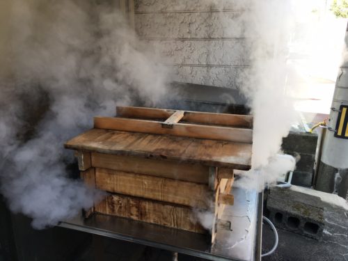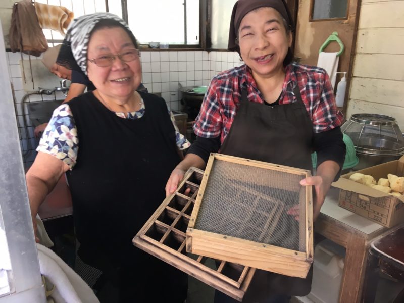 また、芋あんを作る時は、昔ながらの臼と杵で芋をつぶされているそうで、びっくり!!