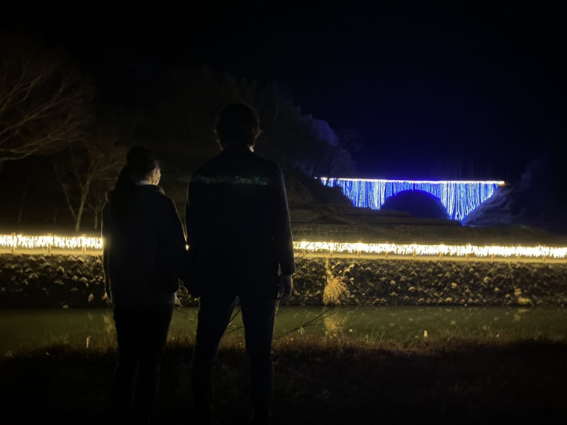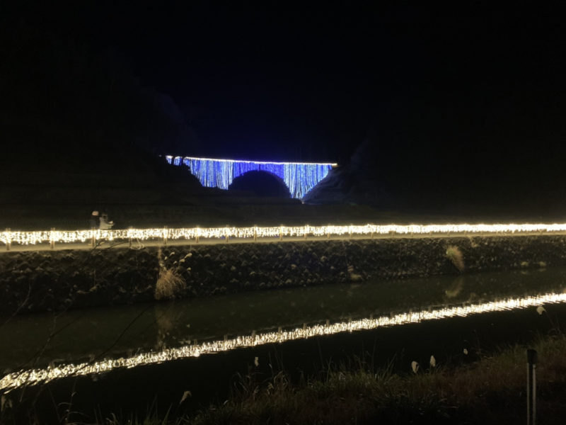 通潤橋でイルミネーションで光り輝いていたので見てた!1月9日まで点灯してるぞ!