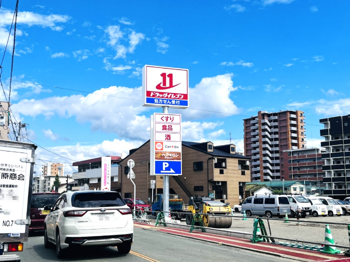 なんと、10月上旬に「ドラッグイレブン」がオープン予定だそう。場所は東区月出1丁目です。