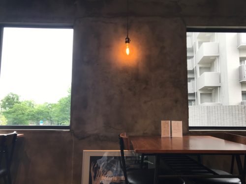 自然光とライトのバランス、白川沿いの静けさ、窓の外の溢れんばかりの緑。