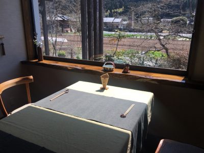 中はというと、こちらは畑が眺められるテーブル席。