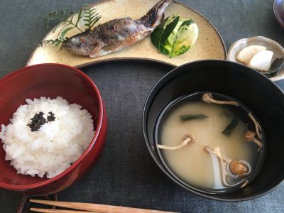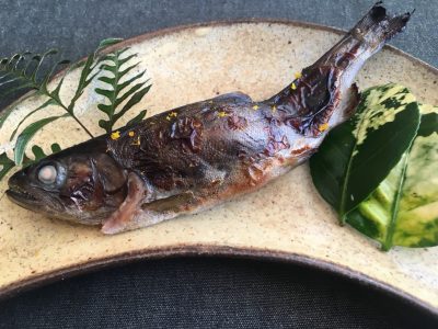 ヤマメは味噌の味がしっかり中までしみこんでおり、香ばしく焼かれていて美味でした。