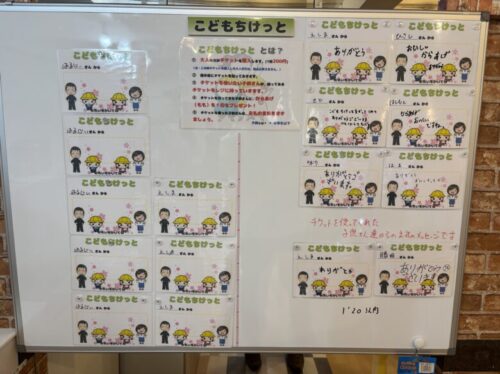 大人の方がチケットを購入しお店に貼っておくことで、お金がないお子様へから揚げを無料で食べさせてあげられるというシステムです。