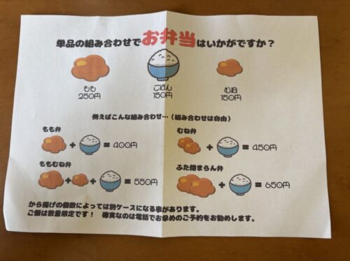 基本はももが250円・むねが150円・ご飯が150円。