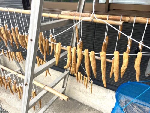 稲臣さんもお父様にならって、今年は大根干しを作られているそうで、軒下には大根がたくさん干されていましたよ。