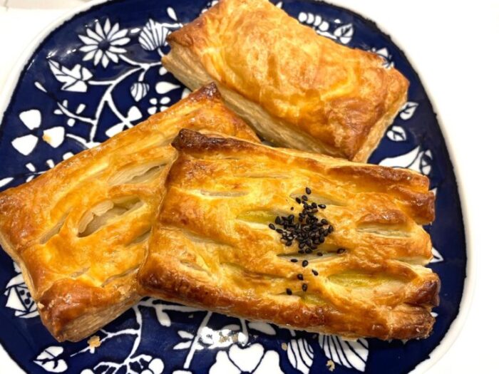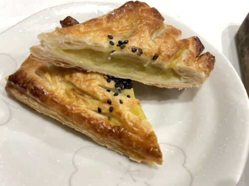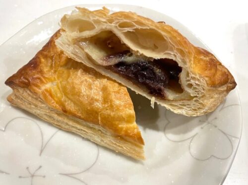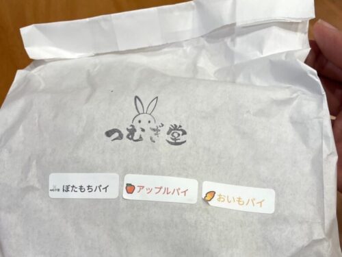 パイの種類は季節に応じて変わるそうですが、今回はアップルパイとおいもパイ、ぼたもちパイを買ってみました。