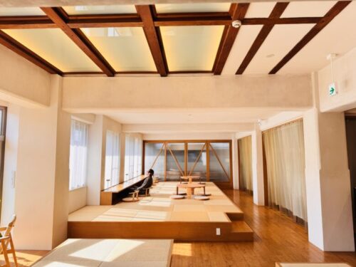 段上がりの休憩スペース(ロビー)は日当たりもよく