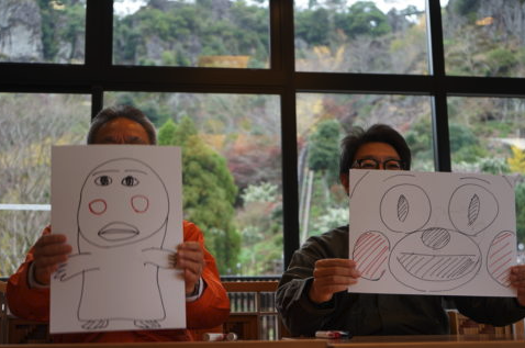 6年前↑こんな(左)くまもんを描いた町長がアート感を醸し出すなんて!恐るべしアートの町津奈木。