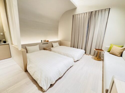 ツインルームをご用意いただきました、ありがとうございます!ソファ長っ!