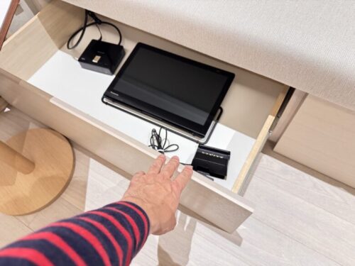 秘密の引き出しが!テレビやドライヤーや充電器などが入っています。部屋に入ってテレビがない!って慌てないように。