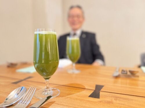 「堀口製茶が作っているビールで、緑茶の風味がビールの苦味と調和していい味出すんですよ、しかもどちらの味も喧嘩しない、絶妙なバランスなんです」