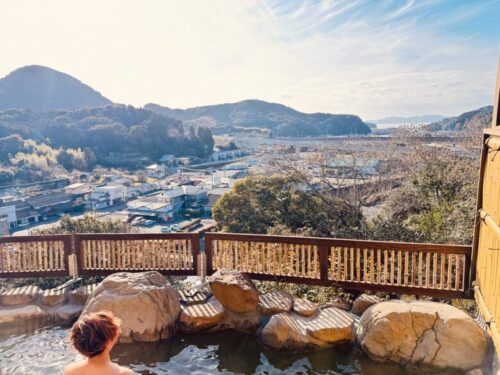 温泉に浸かりながらこの絶景を独り占めする贅沢は、何度味わってもきもちがいい。