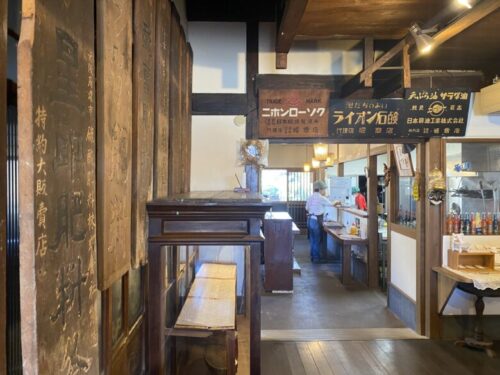 店内は古看板などのレトロな古民家の雰囲気。昔の商家を改装していらっしゃるそうです。