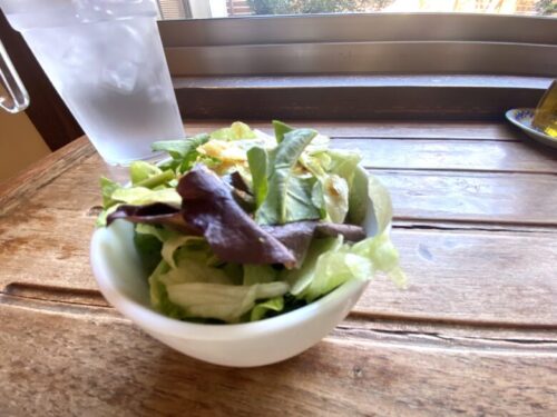 このサラダ、お醤油味のドレッシングが美味しい…!