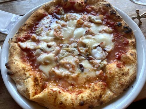 ペッシェ(モッツアレラ,エビ,トマトソース,タコ,アサリ)