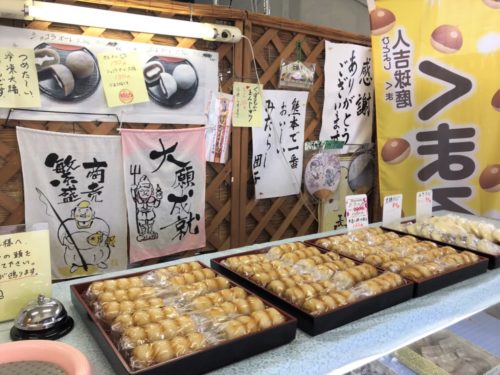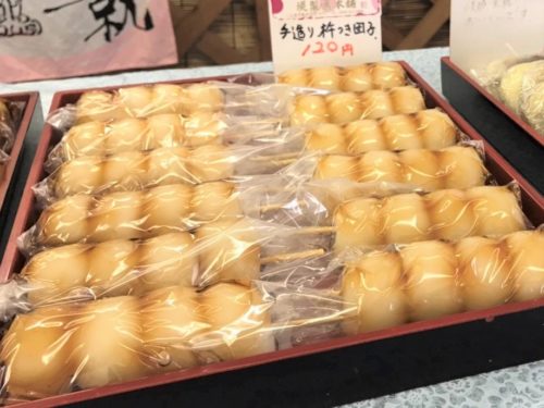 お店には、栗を使ったお菓子や、球磨焼酎入りどらやきなどもありましたが、やっぱりよく売れていたのはみたらし団子。