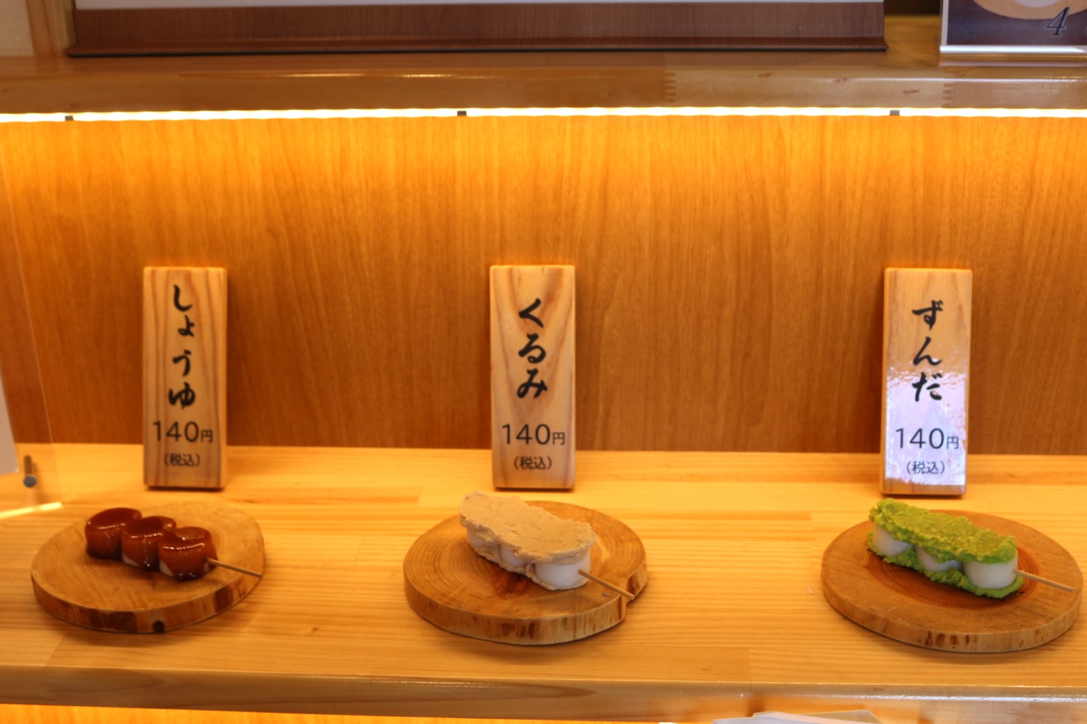 仙台と言えばこれですよね!ずんだ!初めて食べたんですが、あっさりしています。でも、風味が濃い!口の中でぶわっと広がっていきます。人気メニューだそうです。