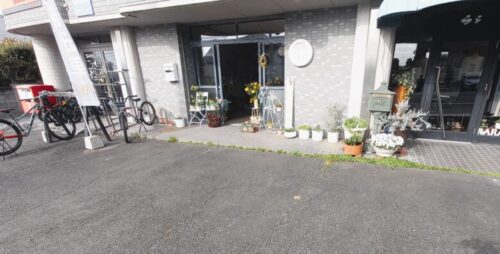 アパートの1階、3つ並んでいるお店の真ん中が花と雑貨のお店「ツユクサ」さん。