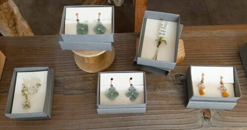 ポピーやリンドウ、ハハコグサなど、珍しい花のアクセサリー。