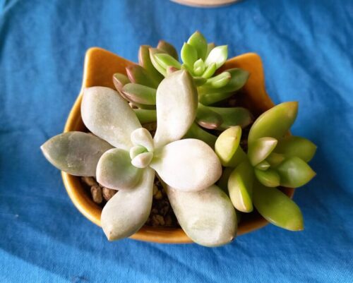 日が当たるところに置いておけば、あまり水もいらず初心者向けの多肉植物の寄植え、おススメです。