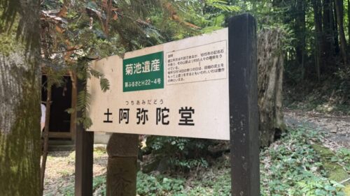 菊池氏に仕えた鹿島氏の居城である戸崎城跡がこの土阿弥陀像の上にあり、(戸坂城跡も草が生い茂り今回は行けませんでしたが)十五代菊池武光に使え活躍した鹿島刑部大輔の墓が、「土阿弥陀像」であるという説明もありました。