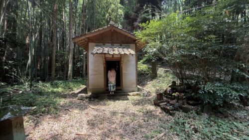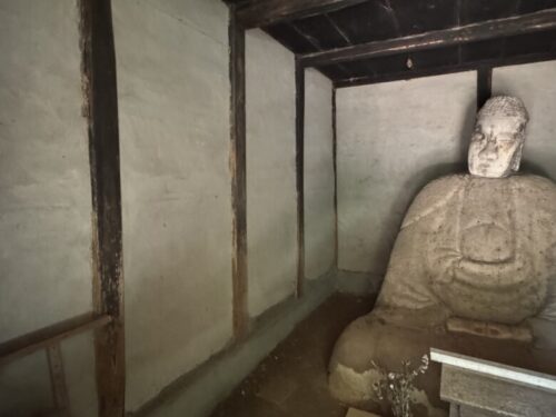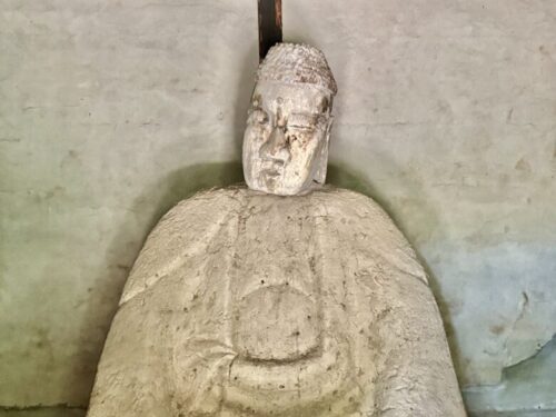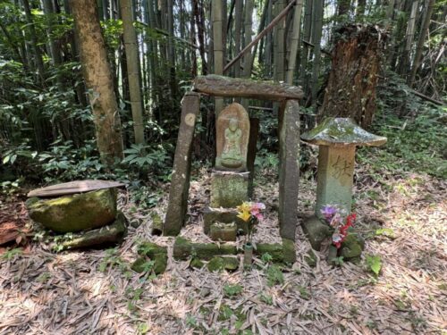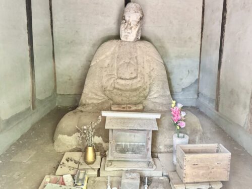 菊池の山の中に入り込んでしまい、ふう、やっと出られた、と安心した時に、思わず「ぎゃあ」と驚いてしまう程の謎の座像を見つけました。
