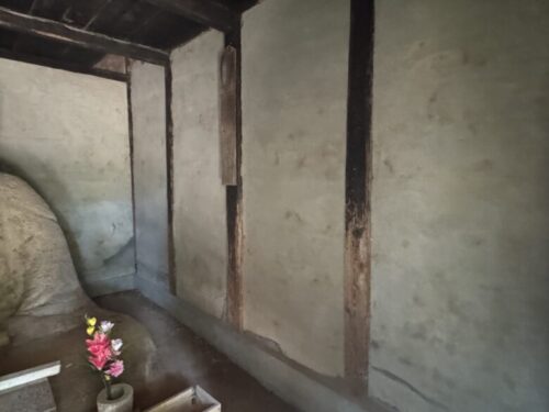 こちらの土阿弥陀堂は豊作の神さまで、毎年12月14日の祭りの日は、田畑の泥土をもって上塗りすると言われております。