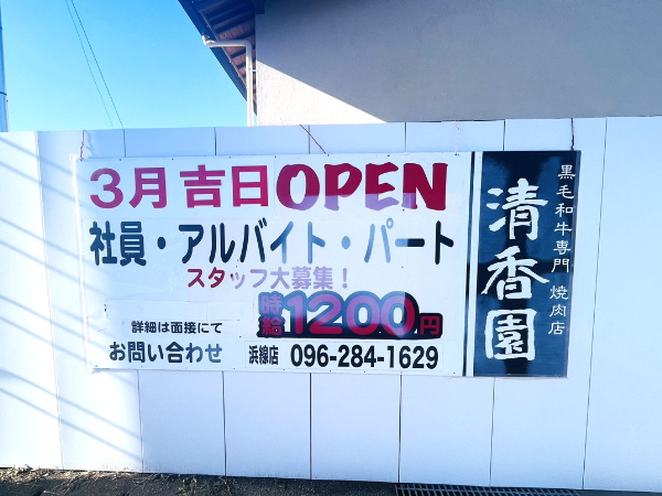 熊本市東区月出に「焼肉清香園」オープン!