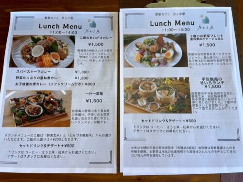 ランチメニューは、ほかにも、あいがけカレーや一汁一菜膳、十種のお野菜プレートなどがあり、何度来ても楽しめそうです。
