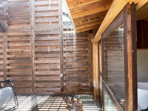 オクタゴンサウナの窓からは、しとしとと屋根から落ちる地下水の雨落も見ることができるので、視覚、聴覚、嗅覚、触覚など、五感をフルに使って豊かな時間を感じられるひとときが過ごせそうです。